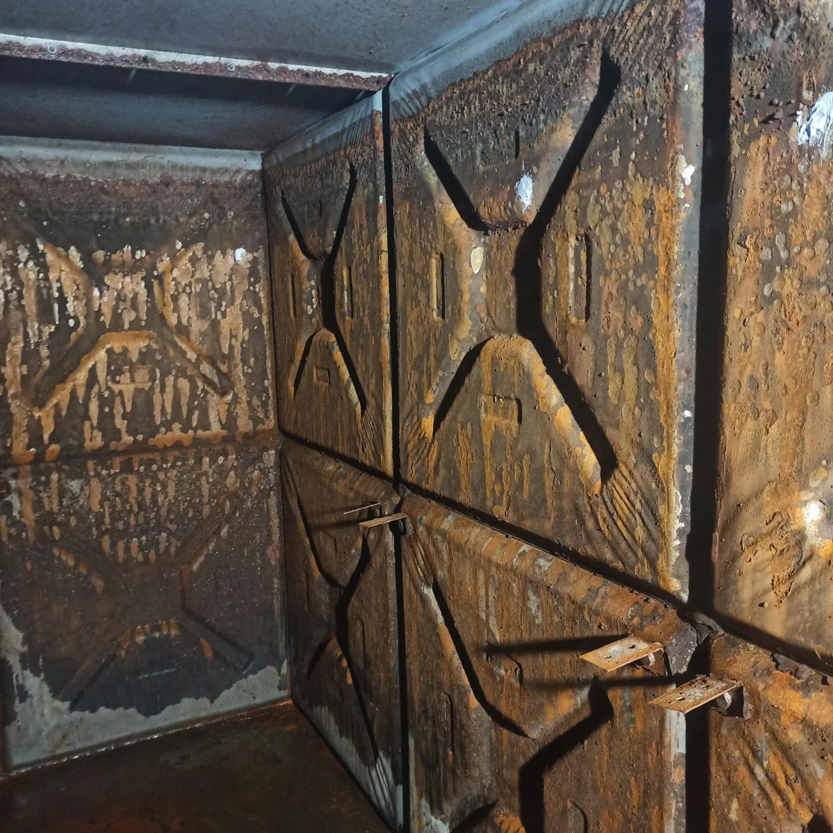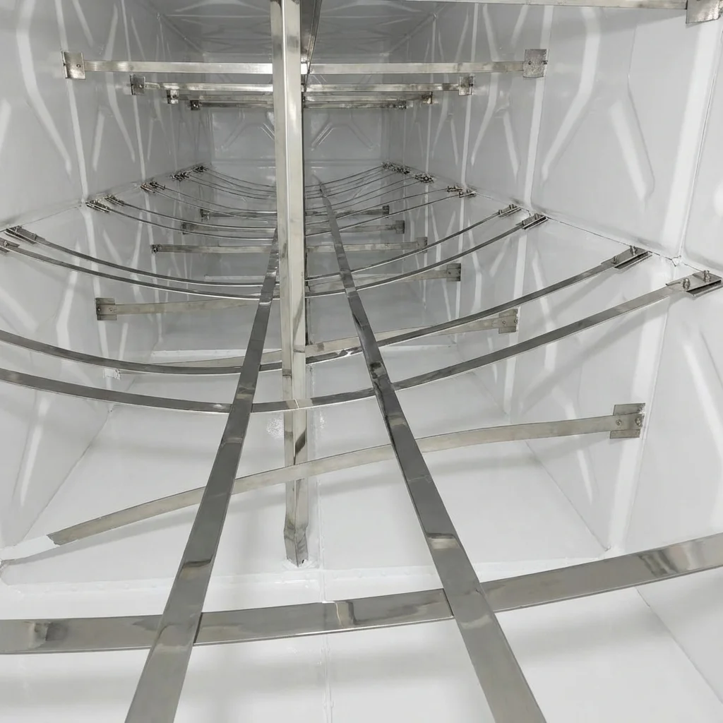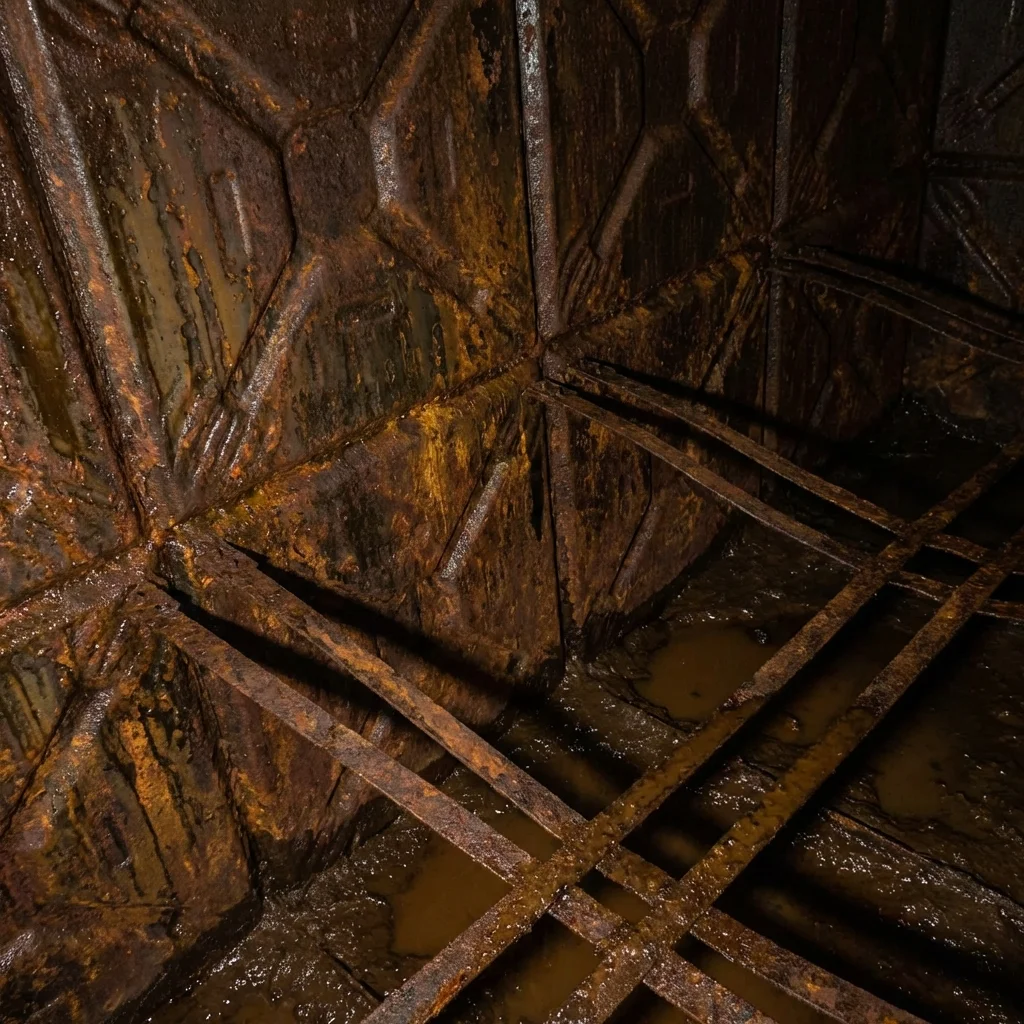 Paslanmış metal deponun korozyon temizliği ve gıda onaylı epoksi kaplama.